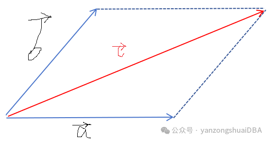 同原点的情况下,可以做一个平行四边形(平行四边形法则),如上图所示,红色的对角线即为c=a+b