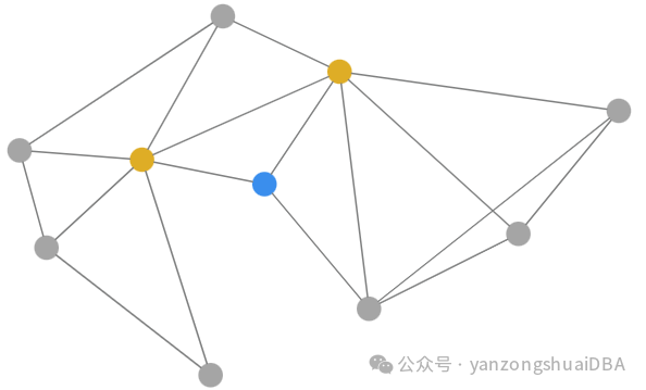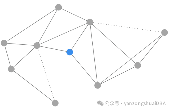 同样计算黄色的两个点的k-nearest邻居,这里的k就是度5,如下图,将虚线部分去掉,最终构建出NSW索引