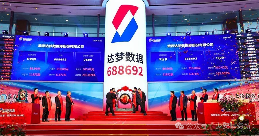 2024年6月12日,武汉达梦数据库股份有限公司(股票名称:达梦数据;股票代码:688692)在上交所科创板挂牌上市。本次发行上市后,达梦数据成为国产数据库领域的“第一股”。
