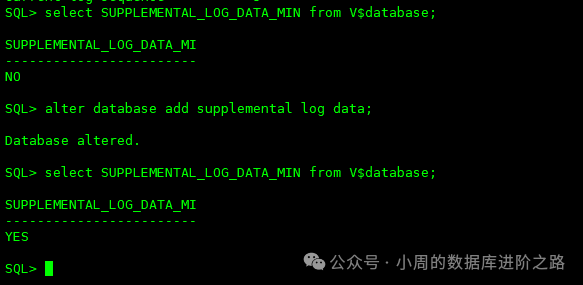 SQL> select SUPPLEMENTAL_LOG_DATA_MIN from V$database;