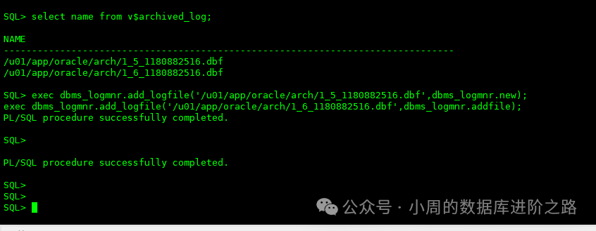 SQL>exec dbms_logmnr.add_logfile('/u01/app/oracle/arch/1_6_1180882516.dbf',dbms_logmnr.addfile);