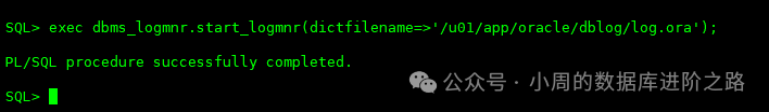 SQL> exec dbms_logmnr.start_logmnr(dictfilename=>'/u01/app/oracle/dblog/log.ora');