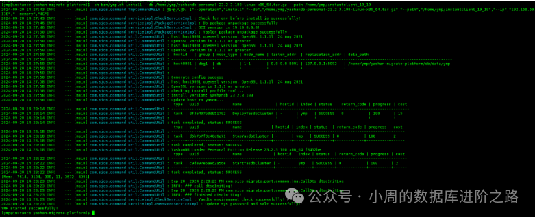 [ymp@instance yashan-migrate-platform]$ sh bin/ymp.sh install --db /home/ymp/yashandb-personal-23.2.3.100-linux-x86_64.tar.gz --path /home/ymp/instantclient_19_19