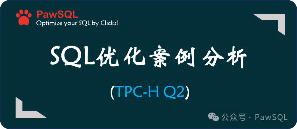 PawSQL对TPC-H基准的Q2进行的自动性能优化后,性能提升了160250.60%。本文将深入探讨 PawSQL 对 TPC-H 基准测试中 Q2 查询的优化过程,重点分析查询重写、索引优化和执行计划改进的具体策略。通过详细的定量分析,评估这些优化策略对性能提升的实际效果。