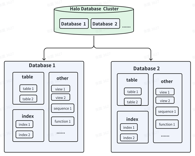 在Halo数据库体系中,数据库群集(DatabaseCluster)类似⼀个容器,在该容器内可以创建多个独