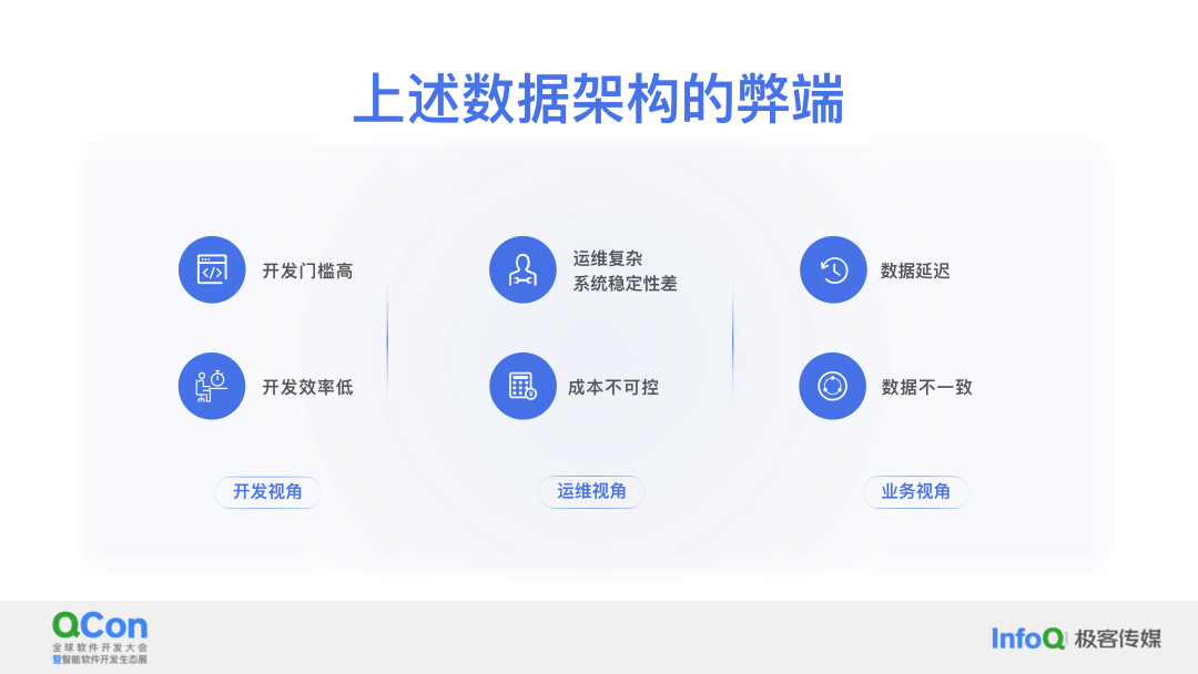 为了应对这些复杂的业务需求,系统逐渐发展出一套复杂的数据架构,这种架构在许多业务中都非常典型,然而,它也存在明显的弊端。接下来,我们将从三个视角分析这些弊端。