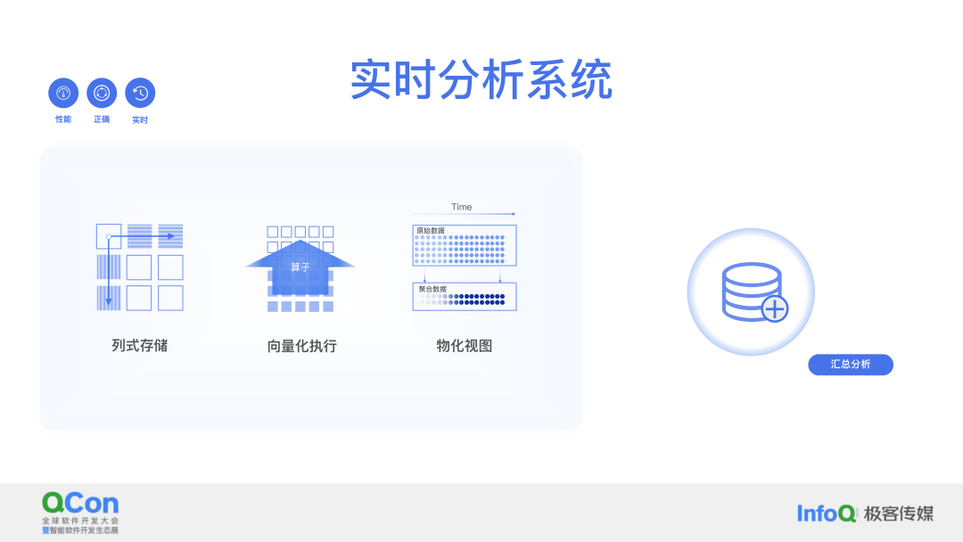 通过引入列式存储、向量化执行和物化视图等核心技术,系统可以高性能地支持分析场景。我们再次得到了一个同时做到性能、正确性和实时性的极致汇总分析系统。