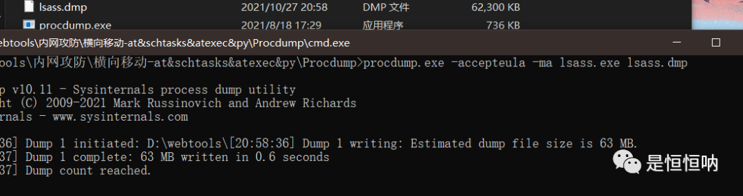 1:使用procdump将lsass.exe 导出
