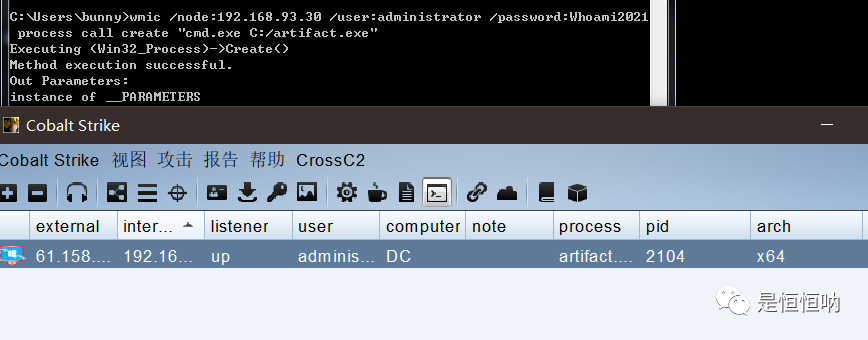 以上介绍了WMI的基本命令,然后我们来尝试WMIC上线CS