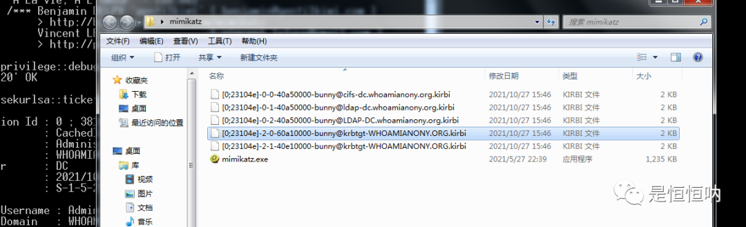 1.使用mimikatz,可以将内存中的票据导出。命令如下