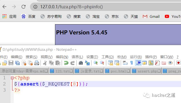 "${phpinfo()}"; => 代码执行phpinfo()php字符串可以使用复杂的表达式的 ${调用的函数};