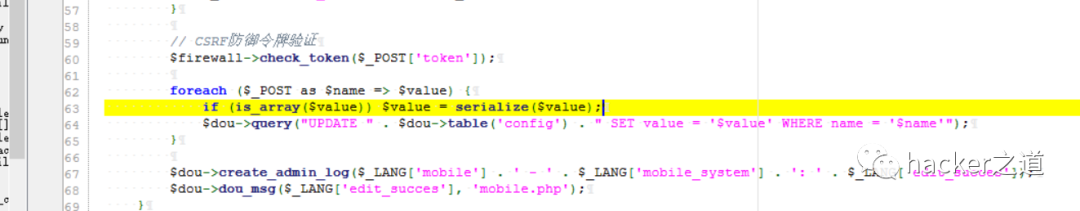 63和64行发现是键值分离将config表中的value值设置为POST传参中的键