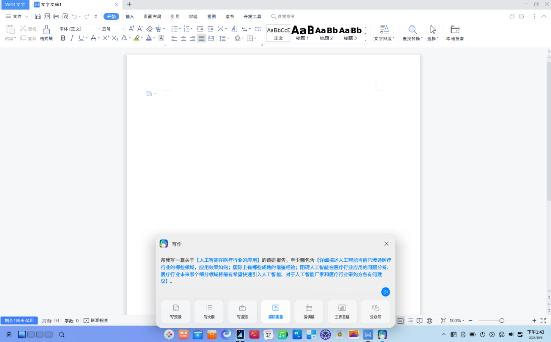你可以直接在输入框输入想法,也可以尝试各类模板,生成对应的提示词,提示词会将关键信息蓝色高亮,可以根据所需进行更改。