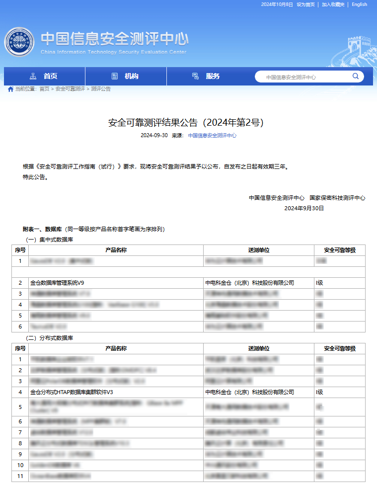 此次通过《安全可靠评测》,表明金仓数据库集中式和分布式产品的安全性和可靠性均得到了国家权威机构的认可。继金仓数据库管理系统KingbaseESV8.0入围第一批名单,至此电科金仓共计2款产品3个版本入围,充分展现出金仓数据库产品迭代效率和研发实力。