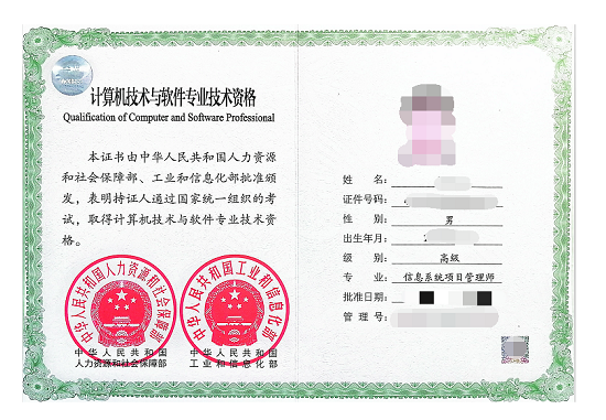 信息系统项目管理师证书是国家级高级职称证书,由人社部和工信部双章认证。取得该证书后,可以享受诸多福利和待遇,如直接聘任高级工程师、高级职称入户、招投标加分、领取补贴、抵扣个税、入专家库等。