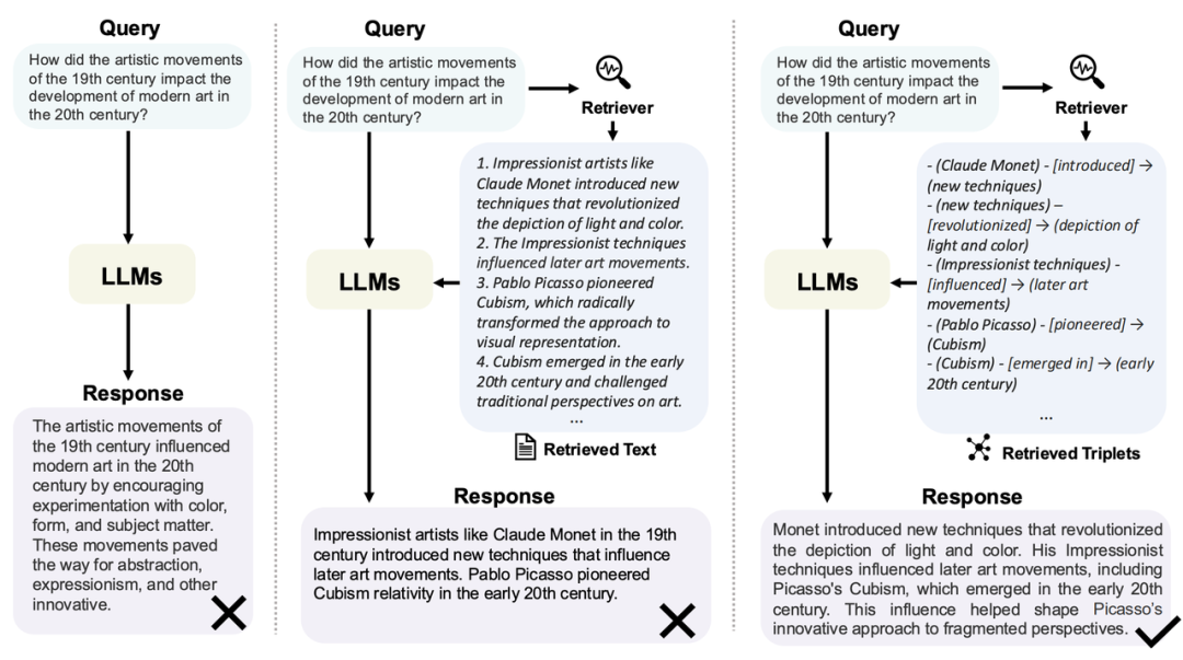 Comparision between Direct LLM, RAG, and GraphRAG.