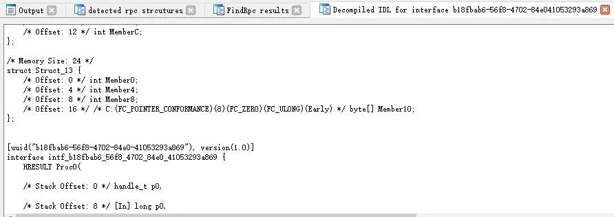 Output窗口以文本形式输出找到的RPC相关数据结构,比如这种