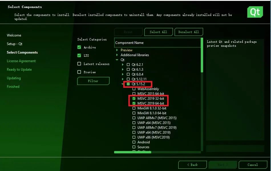 Qt 5.15不再提供离线安装包。有人从5.15.2源码自行编译,编译Windows版比较费劲,没这刚需,我选用在线安装包。