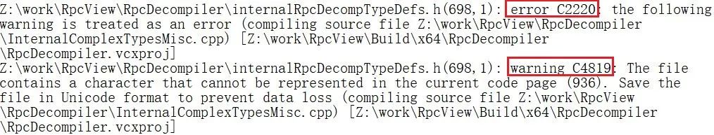 实际只能生成RpcView.exe,最重要的RpcDecompiler.dll未能生成,编译时提示