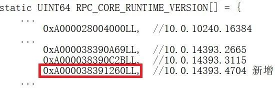 假设测试环境中rpcrt4.dll的版本是10.0.14393.4704,需要在如下数组中增加这个版本信息