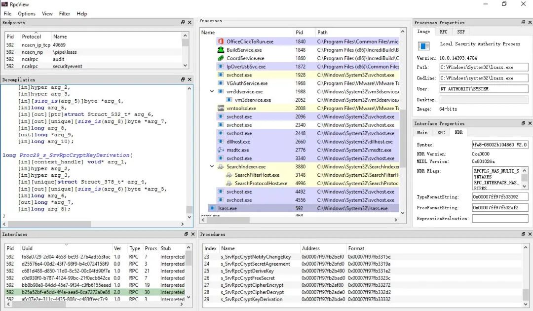 a) 以管理员身份运行RpcView.exe,在Process框中找目标进程,比如lsass.exe