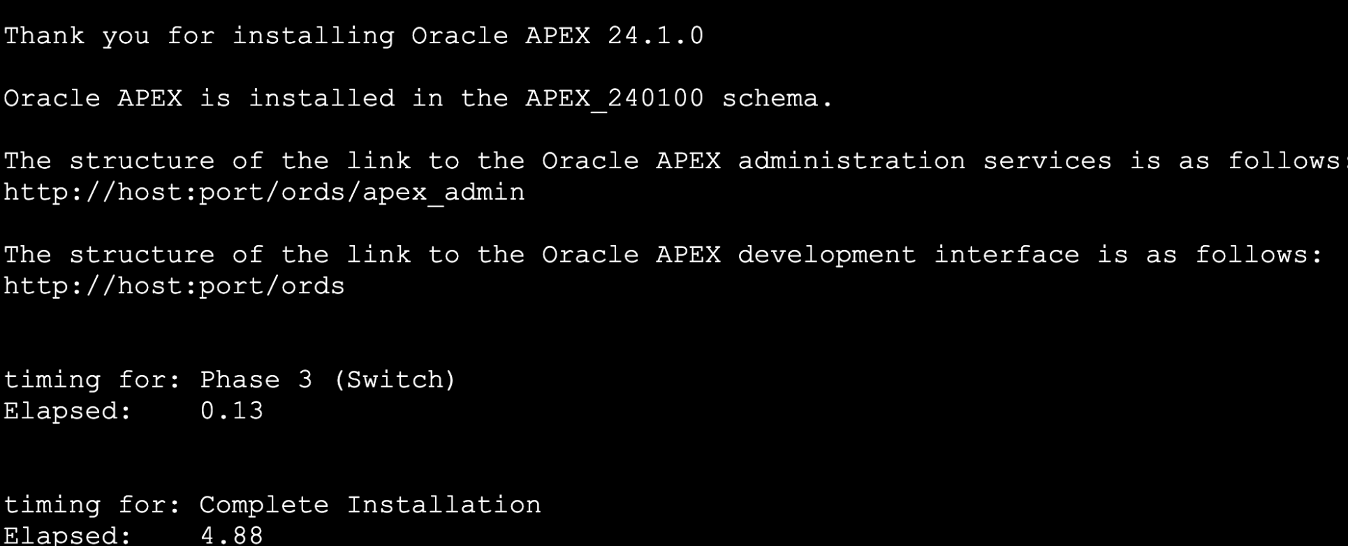 SQL> @apexins.sql TBS_APEX TBS_APEX TEMP /i/;