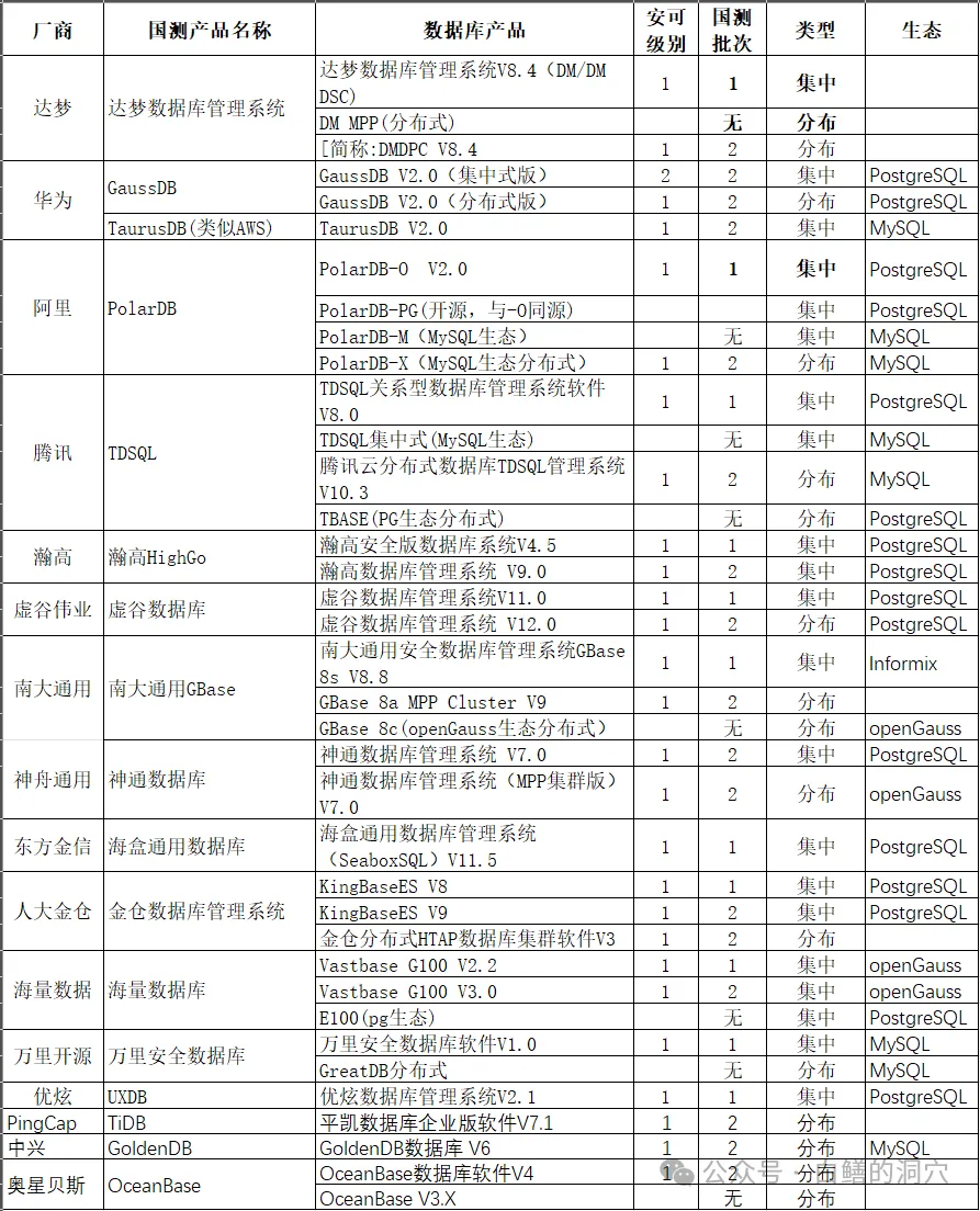连同第一批发布的国测名单产品,为未来数年国内信创改造工作起到行业指导作用。这里引用白鳝老师整理的表格,将国内主要企业、产品及是否通过国测加以整理总结。