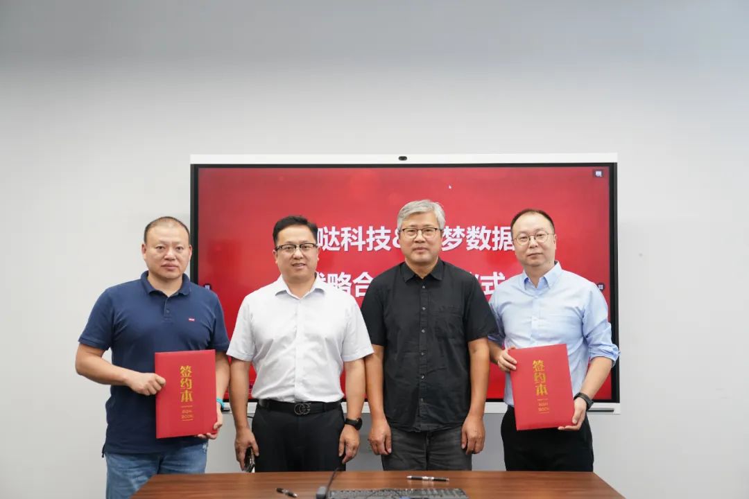 达梦数据高级副总经理张永强,吧哒科技总经理陈立军共同见证签约。达梦数据生态合作与渠道拓展部总经理卢亚波,吧哒科技信服数据总经理皮崇明代表双方公司进行战略合作签约。