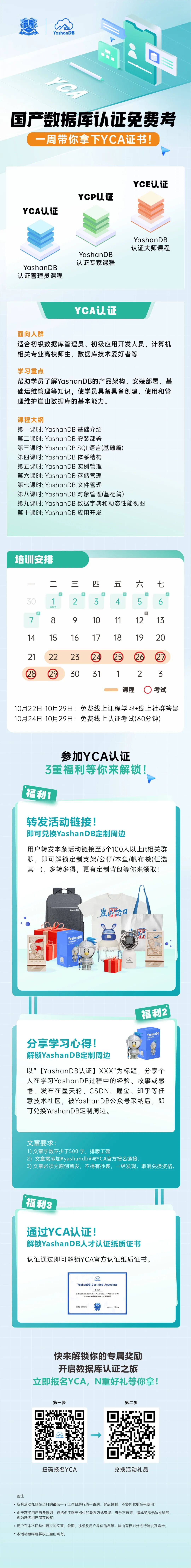 国产数据库认证免费考,10月YCA认证火热招生中!