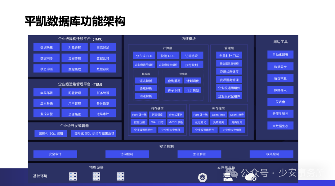 平凯数据库,是平凯星辰公司自主研发的企业级原生分布式数据库产品,具备数据强一致、水平弹性扩缩容、金融级高可用、实时 HTAP 等特性,为企业客户提供安全可靠、功能全面、性能卓越的分布式数据库能力和服务支持,助力企业加速释放数据价值。产品优势主要有:一键水平扩容或缩容;金融级高可用;实时 HTAP;高度兼容 MySQL 及 MySQL 生态;云原生的分布式数据库服务等。