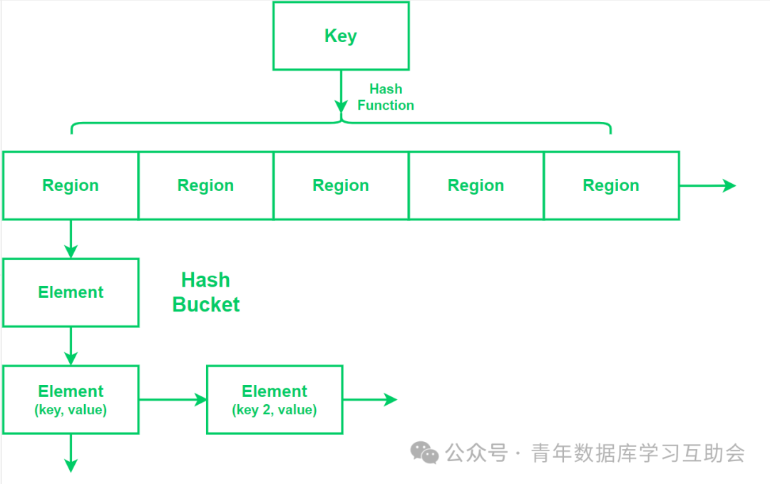 这样,当我们存储一个元素的时候,首先就先判断其位于哪一个“区域”,再将其输送到对应的哈希表里面(哈希表和之前我们所讨论的结构是一样的)。