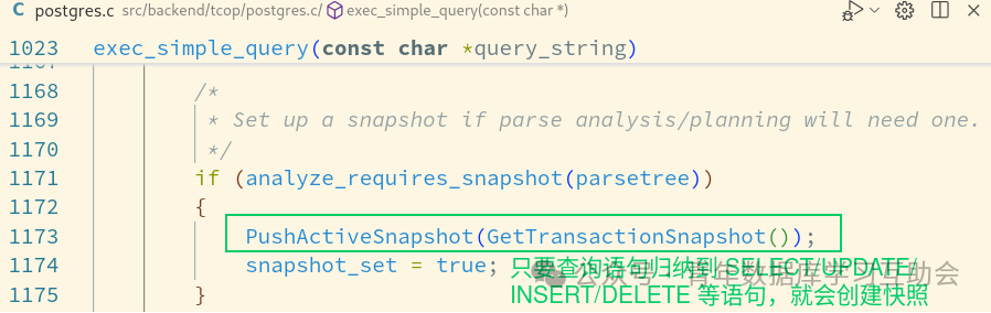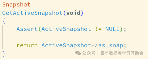 而 PostgreSQL 的 SnapShot,实际上被组织为栈的方式,参考如下: