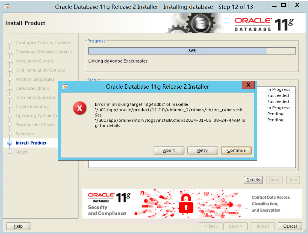 Log file location: u01/app/oracle/product/11.2.0/dbhome_1/cfgtoollogs/opatch/opatch2024-01-05_20-35-55PM_1.log