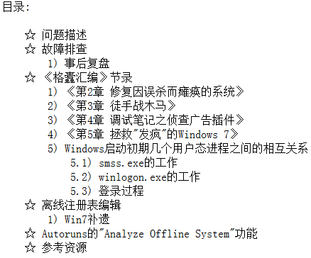 《格蠹汇编》第2至5章介绍了多种典型登录故障、桌面故障,有相当比例的人碰上这几类问题,有相应技术背景的人参照书中介绍的技术手段即可解决问题。
