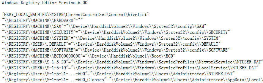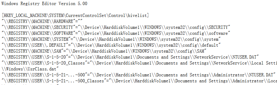 相应的键值数据就是所有当前被加载的HIVE文件。如果某个HIVE被卸载的话,则删除相应的键值。理论上,用WinPE或其它类似手段离线访问硬盘,备份上述HIVE文件,即完成了注册表的完整备份。