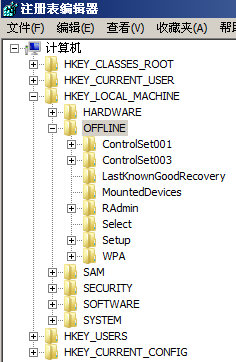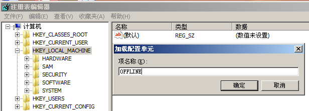 OFFLINE子键只能挂在HKLM或HKU下面,否则"加载配置单元"是灰的,不可选。