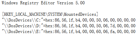 出故障时"\\DosDevices\\C:"的键值数据不再对应原系统盘所在分区,出故障时"\\DosDevices\\D:"的键值数据对应原系统盘所在分区。互换二者的键值数据即可排除故障,至少能让迁移后的XP正常启动并登录成功。至于登录XP后的D盘是什么,可以在XP中根据需要再修正。