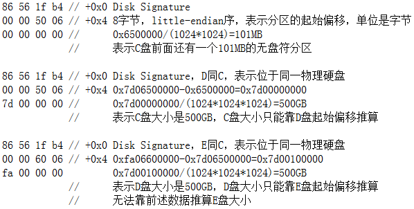 "Disk Signature"位于MBR的偏移0x1b8处,用WinHex可以查看,也可以用diskpart查看。