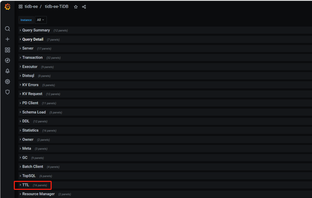 通过 Grafana-> TiDB -> TTL 可以查看 TTL相关的所有面板。