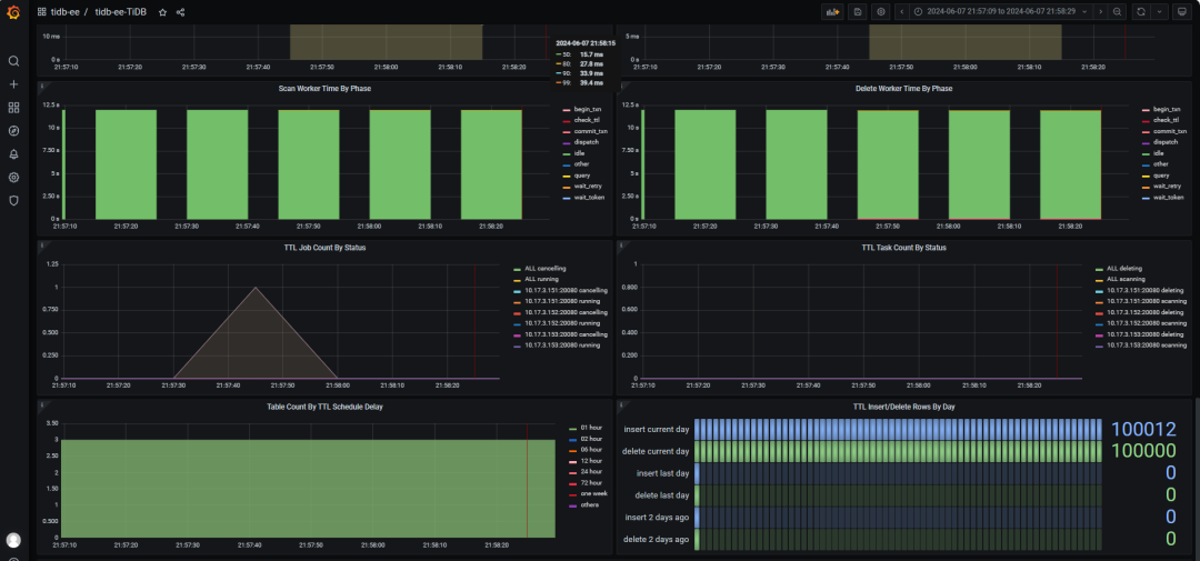 TTL 任务是可以被监控的,这有两种方式,一种是通过 Grafana 图形化界面查看,另一种是直接查看相应的元数据表。