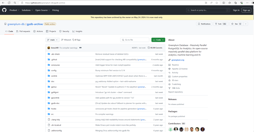 昨天一早圈内就有关于Greenplum不再开源的消息,Greenplum自被博通收购起,进行了多次大规模裁员,昨天突然发现github仓库突然无法访问。
