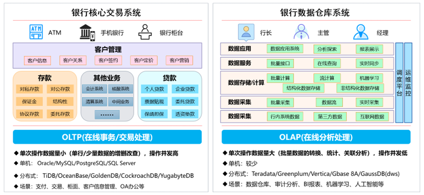 数据库按照业务模型分类可以分为OLTP、OLAP以及HTAP。OLTP侧重交易,比如银行的核心交易类系统,进行存取款、转账、支付等业务,通过操作并发较高;OLAP侧重分析,比如银行的数据仓库系统,进行批量数据转换、统计、关联分析等业务,通常操作并发较低。