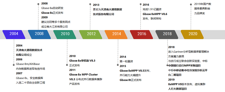 GBase 8a可以算是国产OLAP数据库的一个典型,下图专门为其整理了一张关于南大通用的产品发展历程。