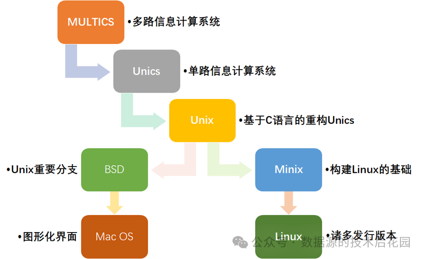 计算机操作系统的鼻祖来自MULTICS(多路信息计算系统),MULTICS是1964年由贝尔实验室、麻省理工学院及美国通用电气公司共同参与研发,其目的是开发出一套安装在大型主机上多人多工的操作系统。在此之前,计算机一次只能接受一个任务,多人的任务需要排队进行。
