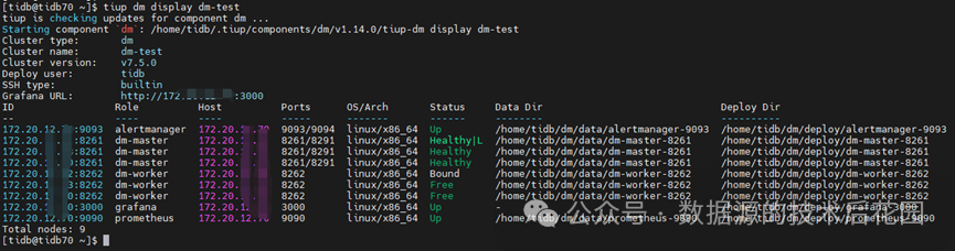deploy dm-test v7.5.0 dm.yaml //启动DM集群 tiup dm start