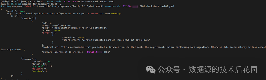 注意,迁移任务的文件配置要求比较严格,用户需要严格按照其格式使用,修改完配置文件后可以通过check-task来检查配置文件的正确性,当输出显示"result":