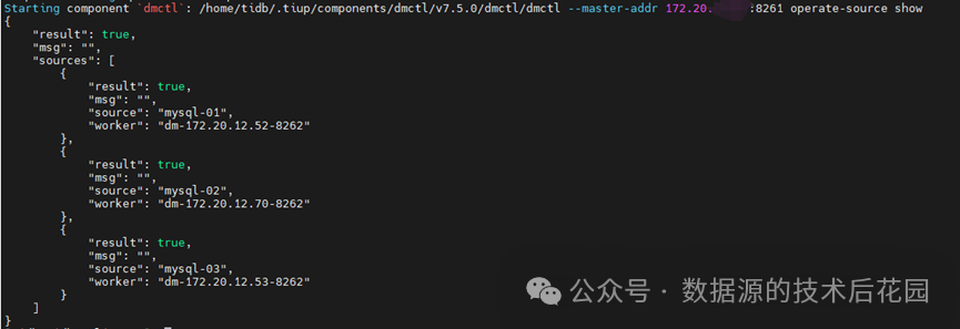 下面使用dmctl工具将数据源配置加载到DM集群中,命令为: